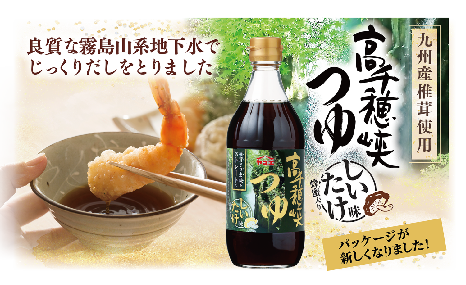 九州産の厳選椎茸から、良質な霧島山系地下水でじっくりとだしをとった、風味豊かなストレートつゆ