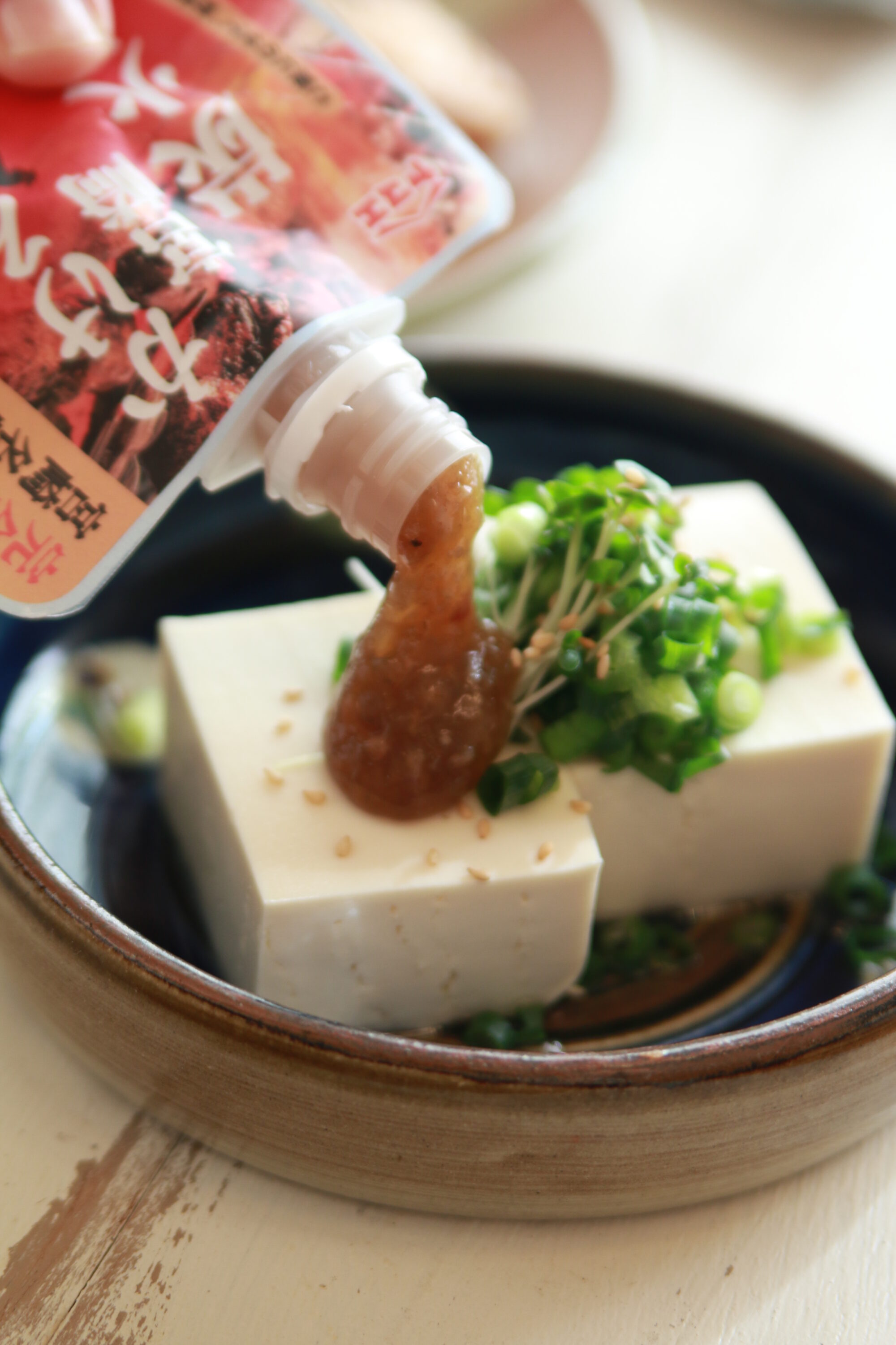 ねぎなどの薬味をのせ、かける宮崎炭火焼だれをかけたら出来上がりです。